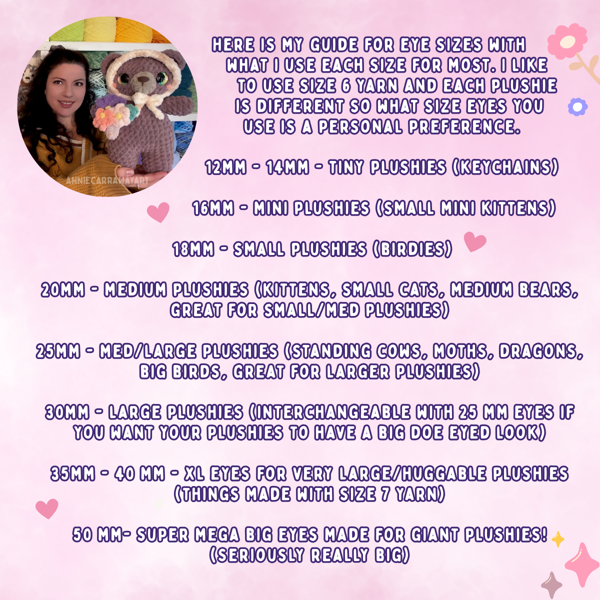 Kawaii Safety Eyes | Multiple Colors and Sizes | 5 Pairs with Glitter Backs