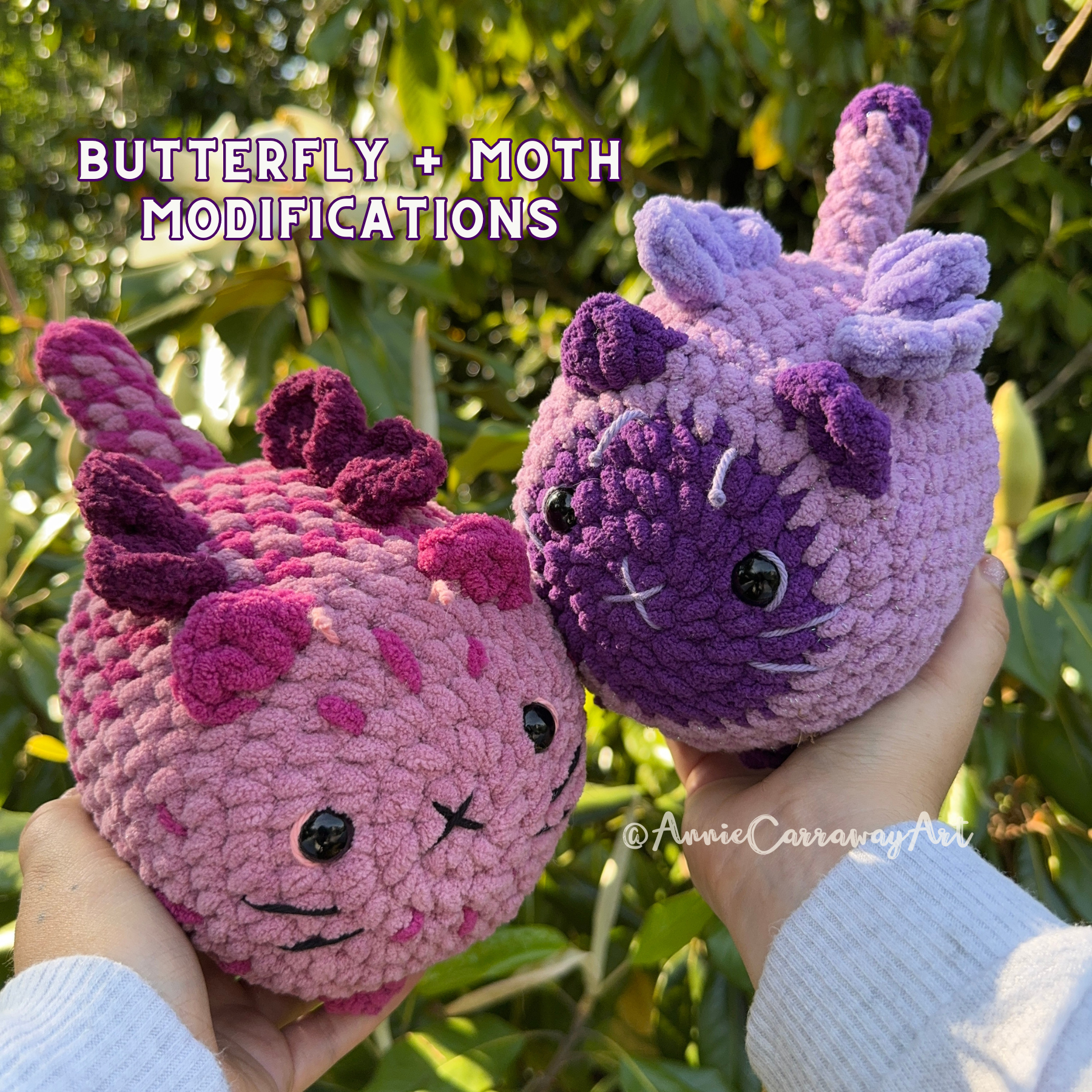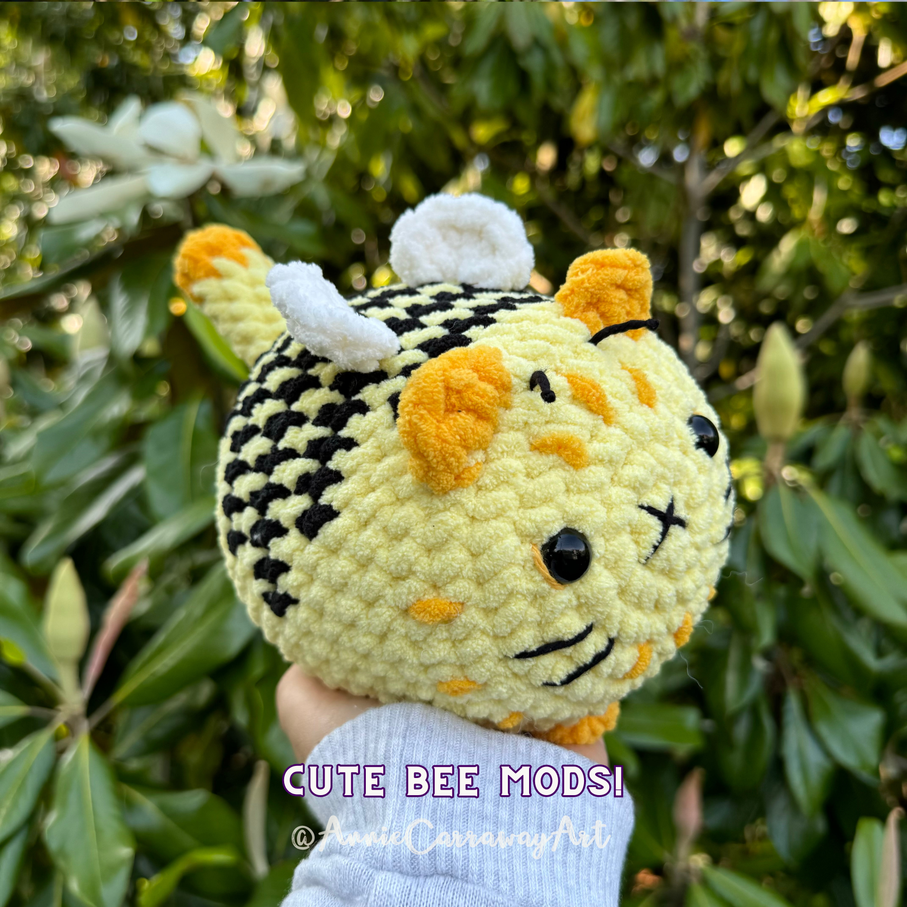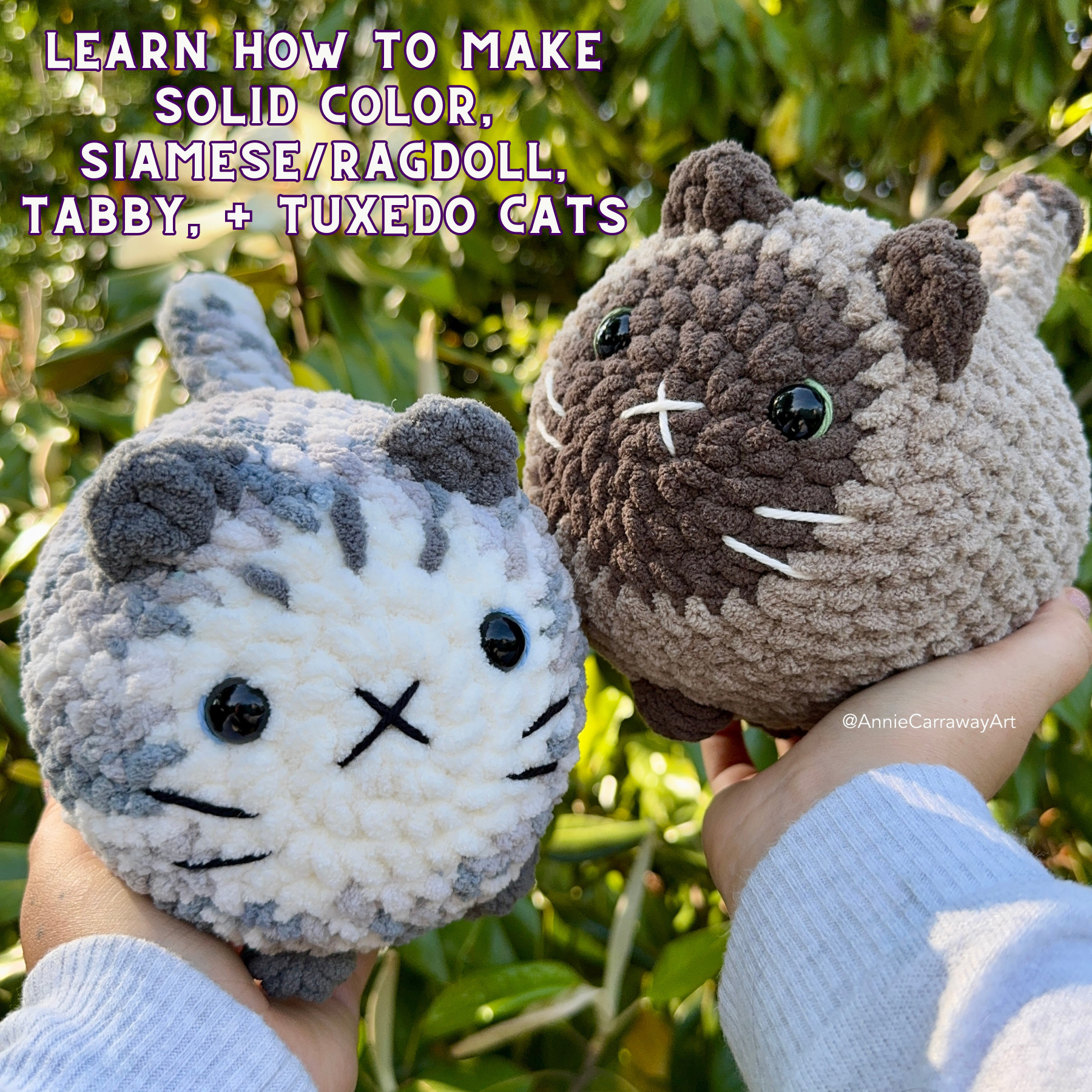 This is an 8 in 1 crochet pattern. I show you how to make Solid Color, Siamese/Ragdoll, Striped Tabby, and Tuxedo cats as well as the following modifications and accessories, daisy and sunflower necklaces, bee wings, and butterfly/moth wings.