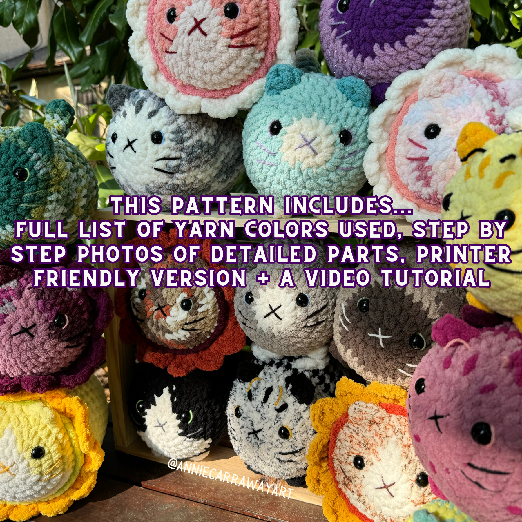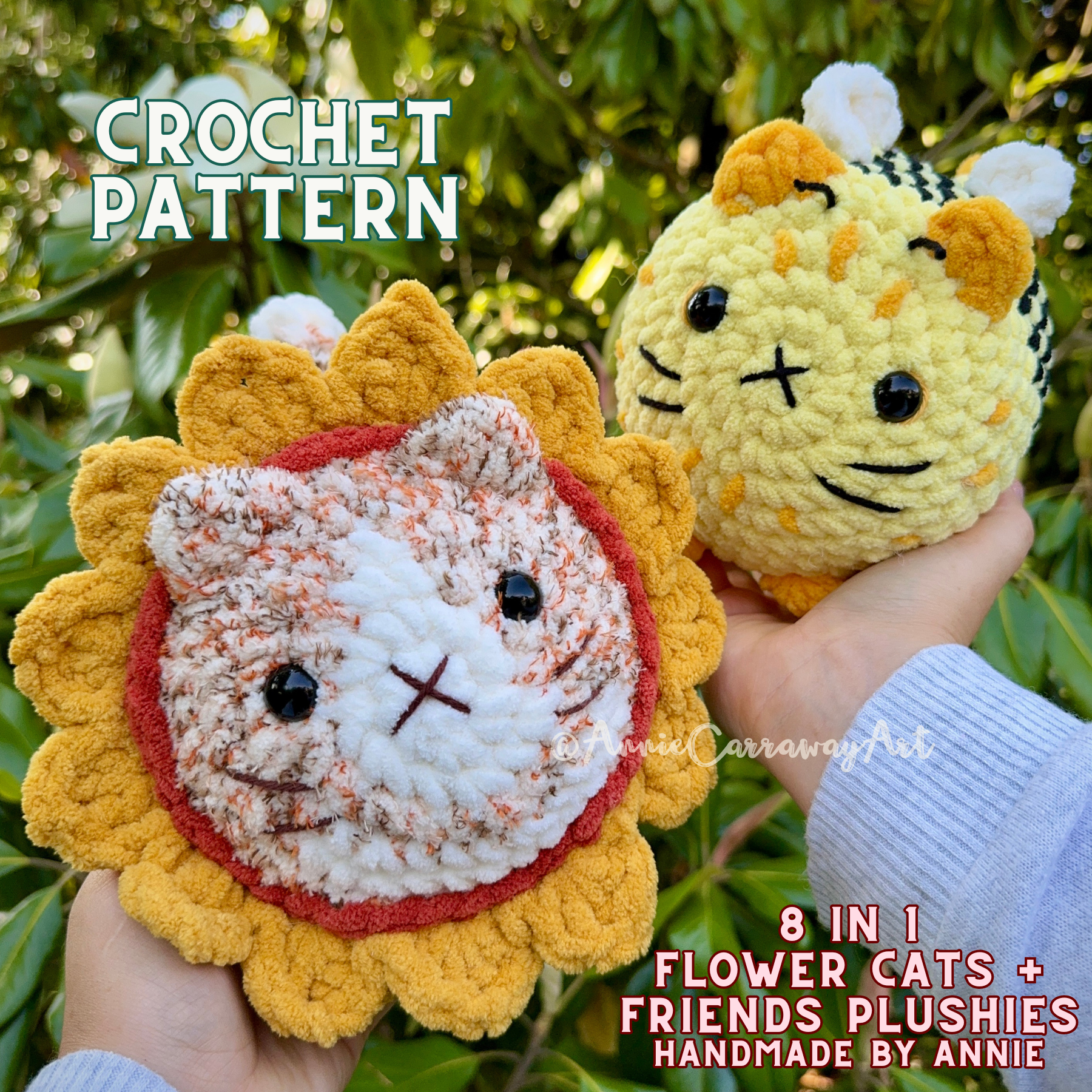 Create your own cute flower cat plushies using my crochet pattern! This is a digital download of a PDF file with step by step photos, material list, detailed explanations, and tips for selling plushies/making videos. This pattern is written in US crochet terms and American English. This is written in crochet shorthand but is beginner friendly and I’m always available to help!