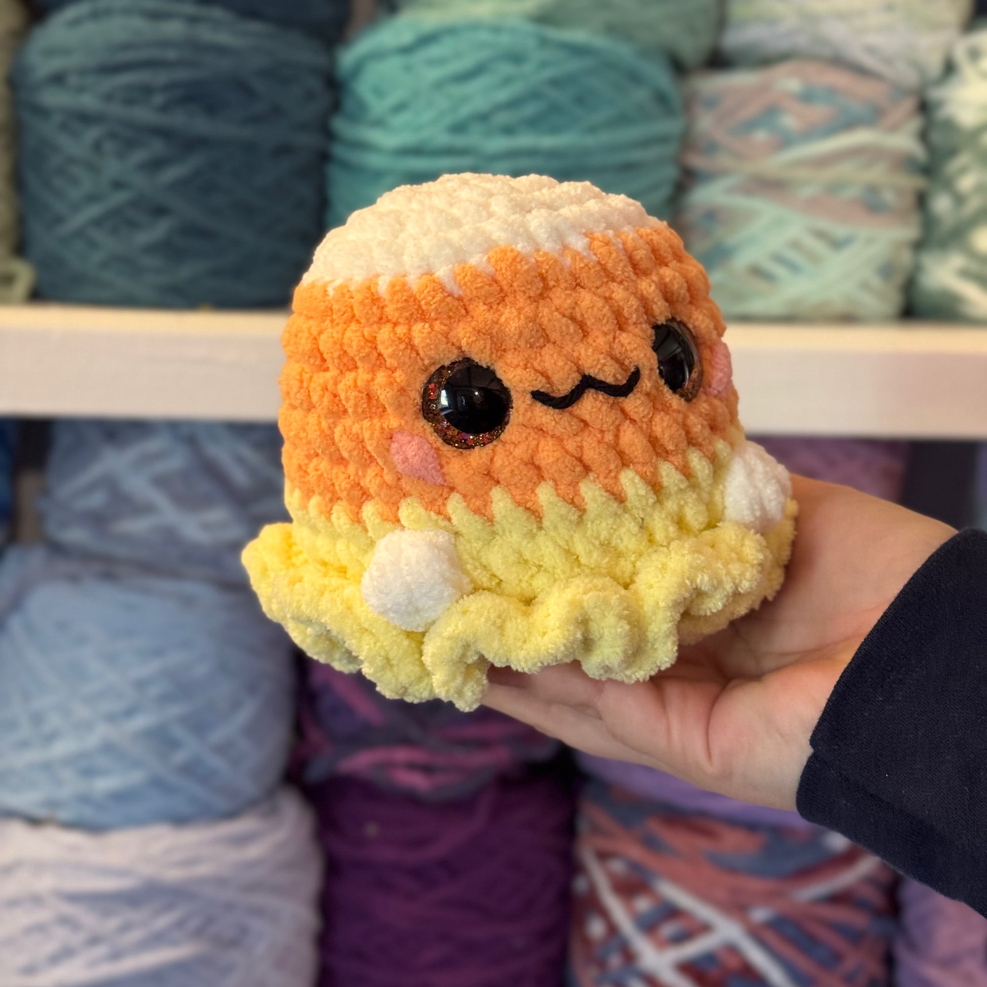 Candy Corn Ghost Crochet Plushie | Hand Painted Eyes