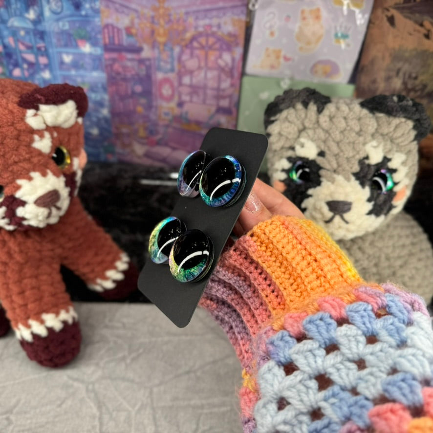 These are offset Kawaii style eyes so the pupil is off to the side instead of in the center and sinker style so they sit flush with the plushie.