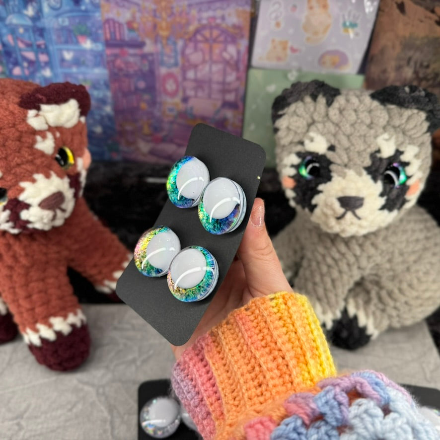 Hand Painted Kawaii Eyes | 30mm | Emerald and Dawn with White Pupil