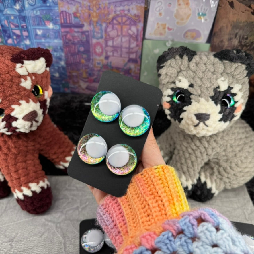 These are offset Kawaii style eyes so the pupil is off to the side instead of in the center and sinker style so they sit flush with the plushie.