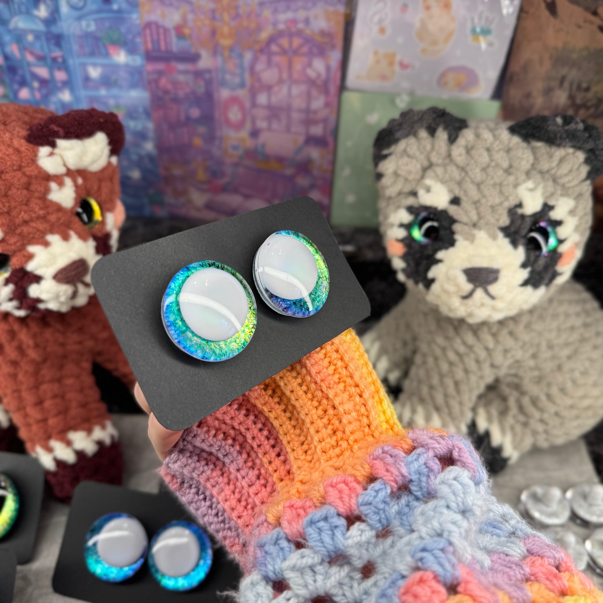 The very large eyes (35 mm - 50 mm) usually have a few small air bubbles in the eye near the pupils. I think this is just something that commonly occurs when they are being created. I do my best to use the best quality ones and don't think it is too noticeable, I just wanted to make sure other knew that it is common.