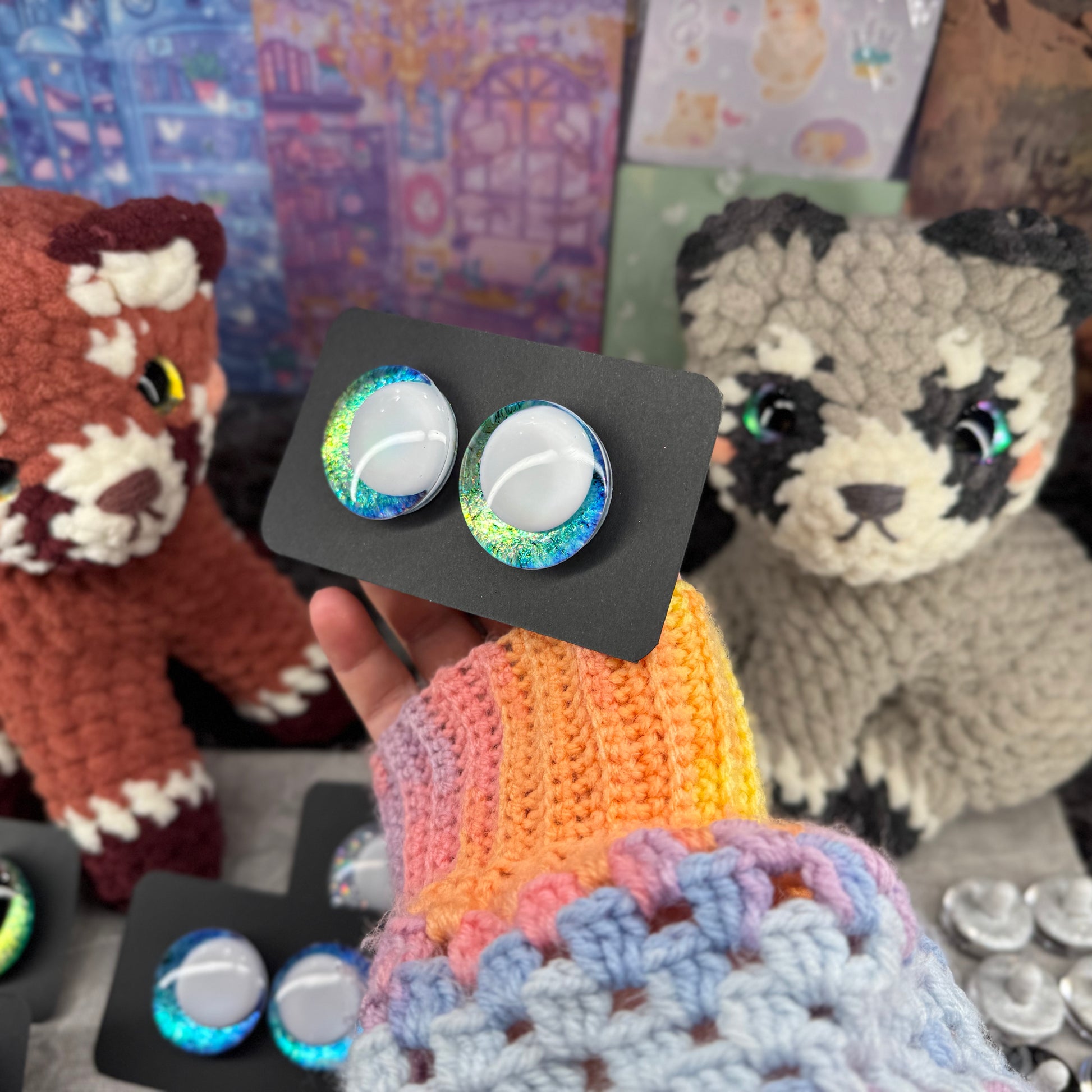 These are offset Kawaii style eyes so the pupil is off to the side instead of in the center and sinker style so they sit flush with the plushie.