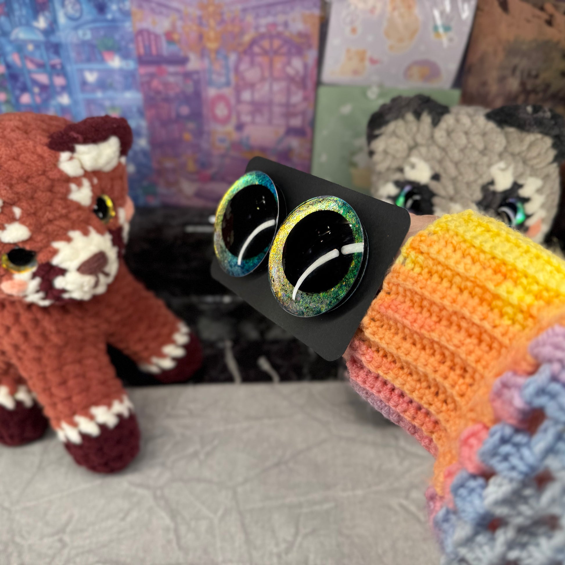 These are offset Kawaii style eyes so the pupil is off to the side instead of in the center and sinker style so they sit flush with the plushie.