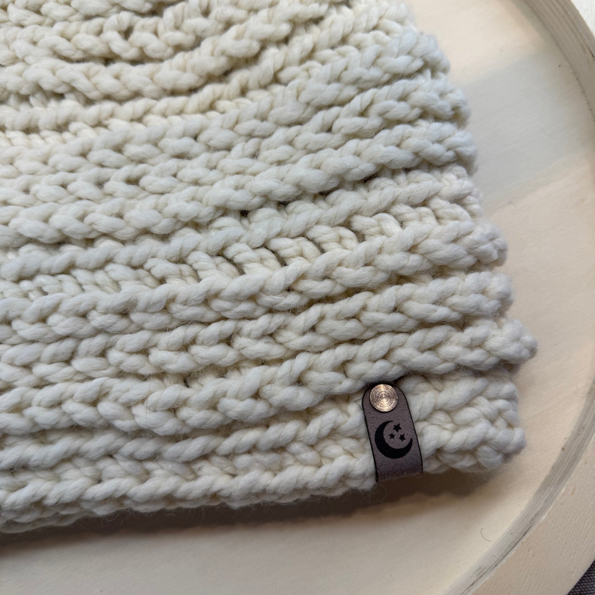 Handmade Winter Beanie | Wool Mix Yarn in the Color Fisherman | Daybreak Design