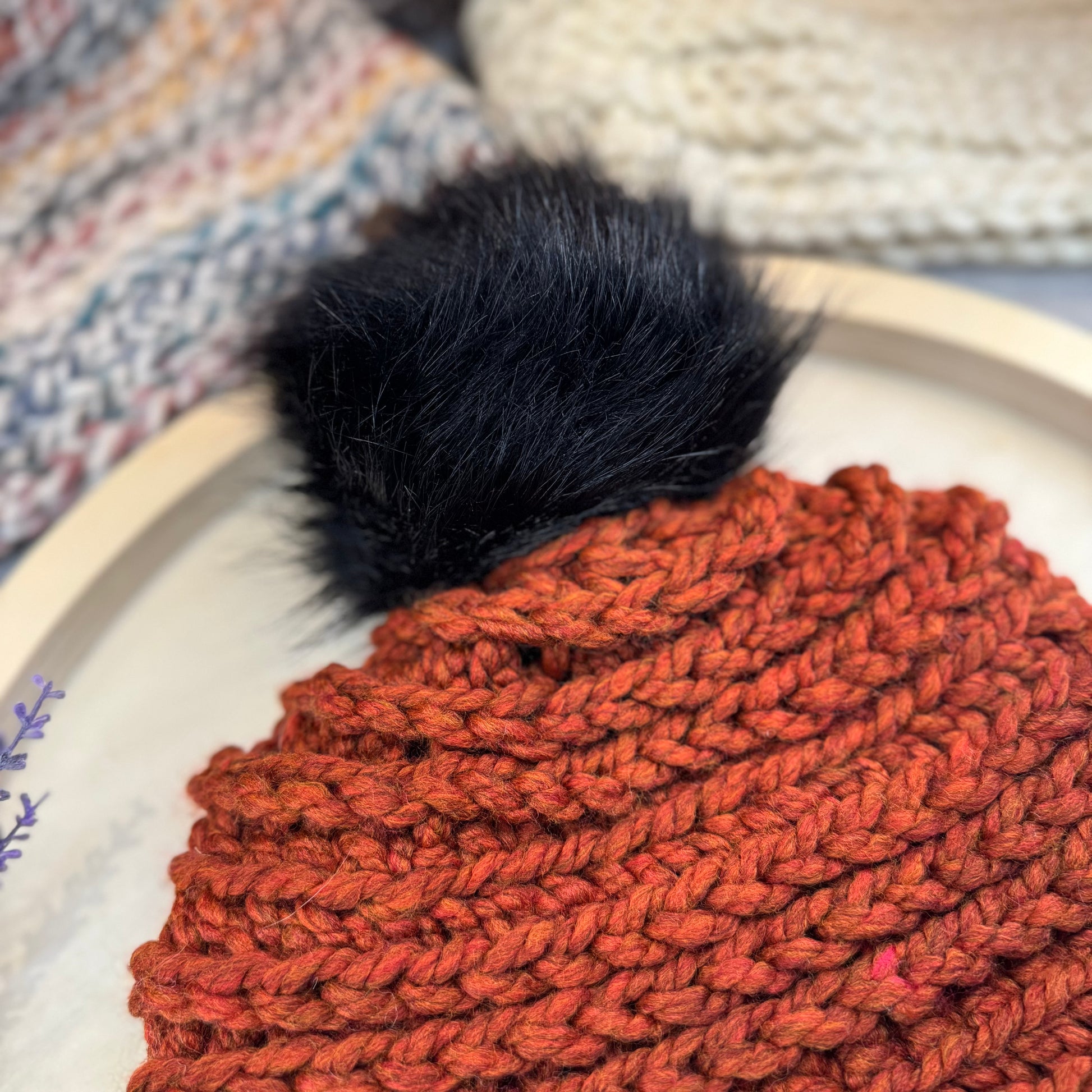 Handmade Winter Beanie | Wool Mix Yarn in the Color Spice | Daybreak Design Extra Long
