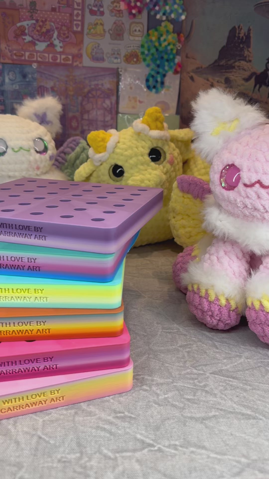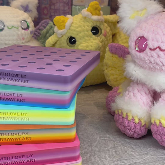 These boards can hold 12 mm - 50 mm safety eyes and clearly display your eye options so it becomes super easy to choose what you would like to use.
