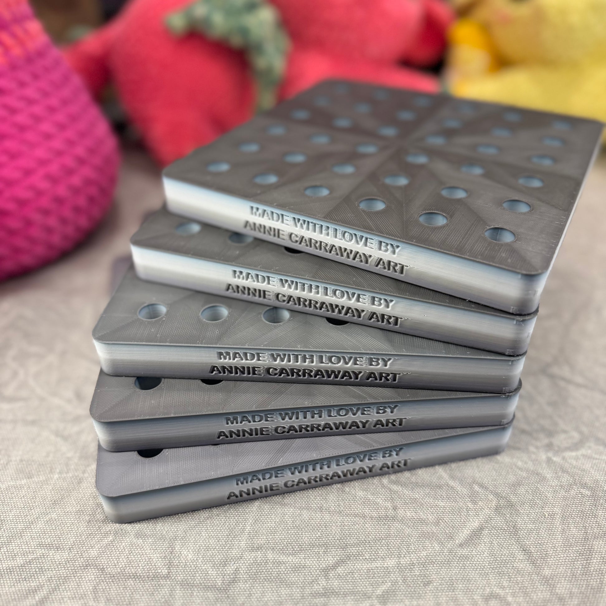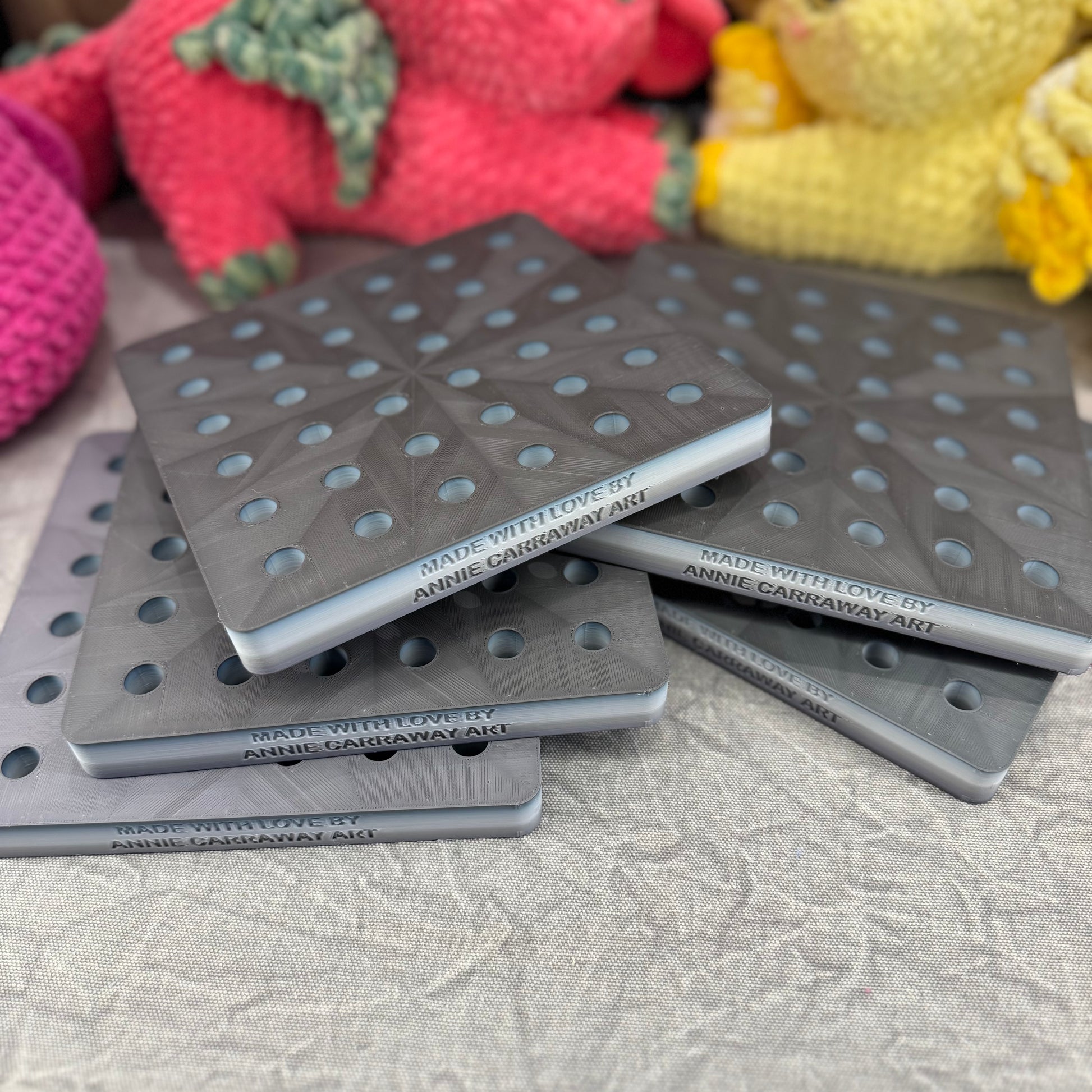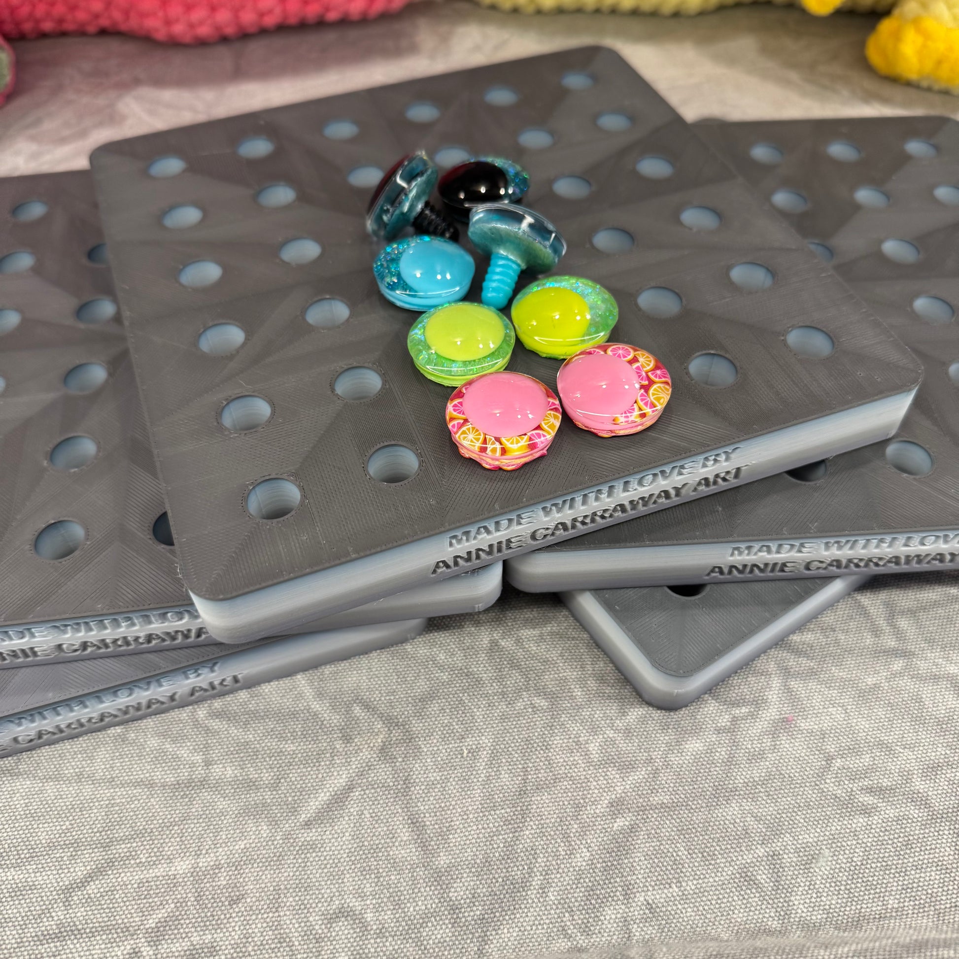 These boards can hold 12 mm - 25 mm safety eyes and clearly display your eye options so it becomes super easy to choose what you would like to use.