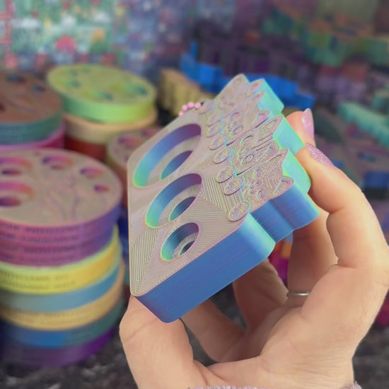 Each tool is based off of my original artwork, which I turn into a 3d design, and produce with a filament printer. I am the sole designer and producer of these products and am responsible for each step in their production. I do not use Artificial Intelligence, everything is hand drawn by me, and my 3d printer is simply one of my tool to make my vision come to life.